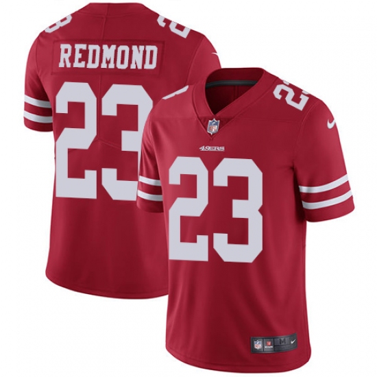 Home>NFL>San Francisco 49ers>Will Redmond>Youth Nike San Francisco 49ers #23 Will Redmond Red Team Color Vapor Untouchable Limited Player NFL Jersey