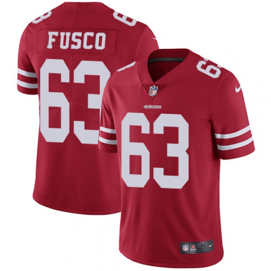 Home>NFL>San Francisco 49ers>Brandon Fusco>Youth Nike San Francisco 49ers #63 Brandon Fusco Red Team Color Vapor Untouchable Limited Player NFL Jersey