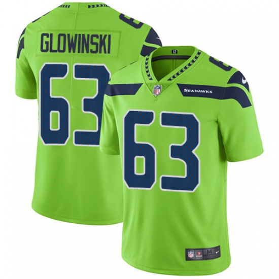 Home>NFL>Seattle Seahawks>Mark Glowinski>Youth Nike Seattle Seahawks #63 Mark Glowinski Limited Green Rush Vapor Untouchable NFL Jersey