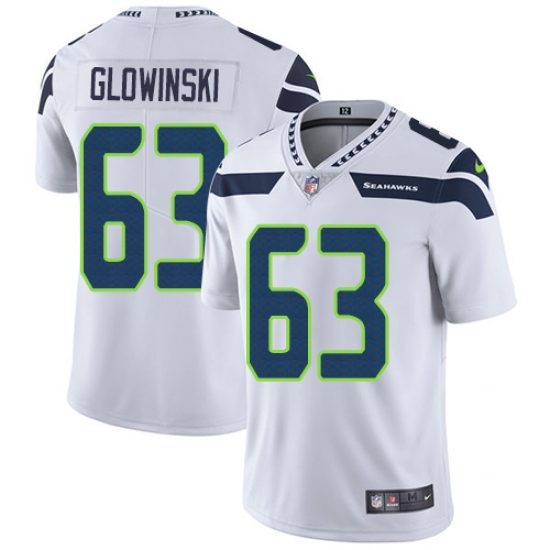 Home>NFL>Seattle Seahawks>Mark Glowinski>Youth Nike Seattle Seahawks #63 Mark Glowinski White Vapor Untouchable Limited Player NFL Jersey