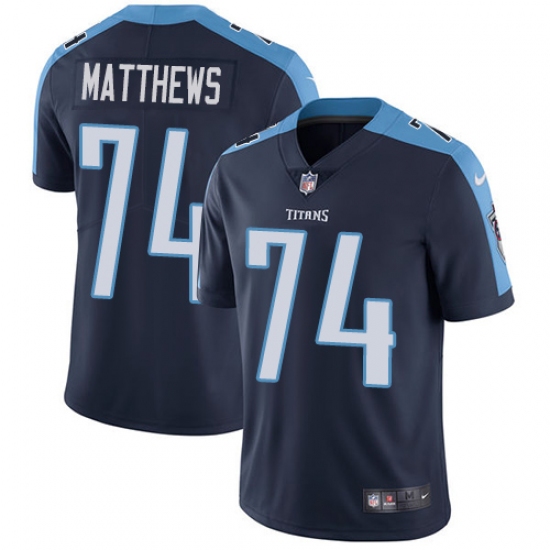 Youth Nike Tennessee Titans #74 Bruce Matthews Navy Blue Alternate Vapor Untouchable Limited Player NFL Jersey