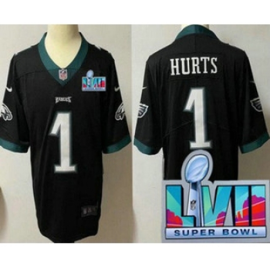 >Youth Philadelphia Eagles #1 Jalen Hurts Limited Black Super Bowl LVII Vapor Jersey
