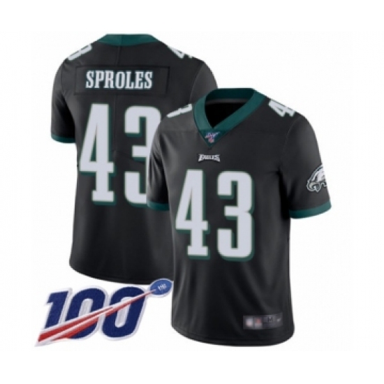 Men's Philadelphia Eagles #43 Darren Sproles Black Alternate Vapor Untouchable Limited Player 100th Season Football Jersey