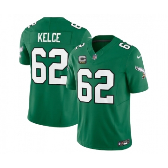 >Youth Philadelphia Eagles #62 Jason Kelce Green 2023 F.U.S.E. C Stitched Football Jersey