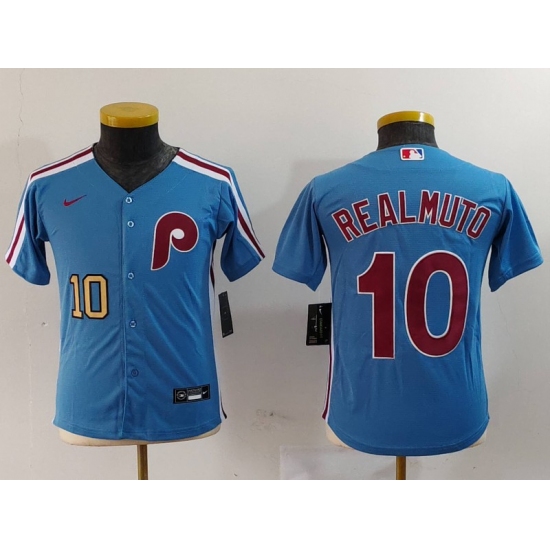 Youth Philadelphia Phillies #10 JT Realmuto Light Blue Cooperstown Cool Base Jerseys