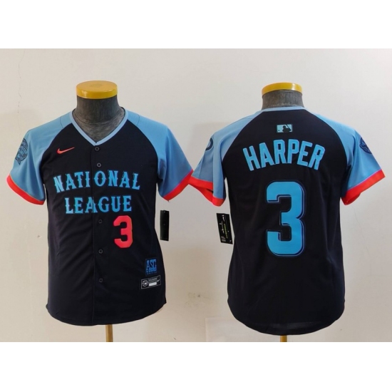 Youth Philadelphia Phillies #3 Bryce Harper Number Navy 2024 All Star Limited Stitched Jersey