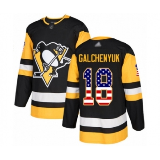 >Youth Pittsburgh Penguins #18 Alex Galchenyuk Authentic Black USA Flag Fashion Hockey Jersey