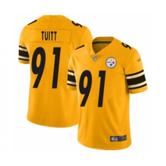 >Youth Pittsburgh Steelers #91 Stephon Tuitt Limited Gold Inverted Legend Football Jersey