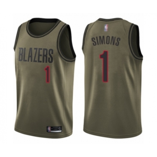 >Youth Portland Trail Blazers #1 Anfernee Simons Swingman Green Salute to Service Basketball Jersey