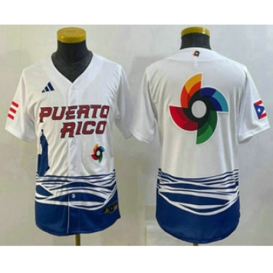 Men's Puerto Rico Baseball Blank White 2023 World Baseball Classic Stitched Jerseys