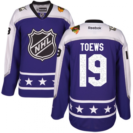 Youth Reebok Chicago Blackhawks #19 Jonathan Toews Authentic Purple Central Division 2017 All-Star NHL Jersey