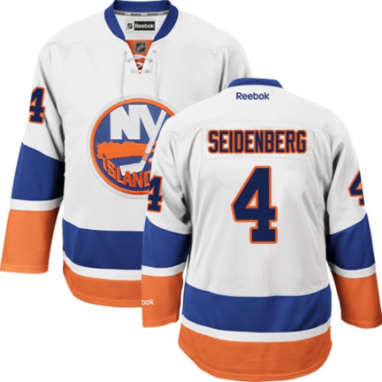 Home>NHL>New York Islanders>Dennis Seidenberg>Youth Reebok New York Islanders #4 Dennis Seidenberg Authentic White Away NHL Jersey