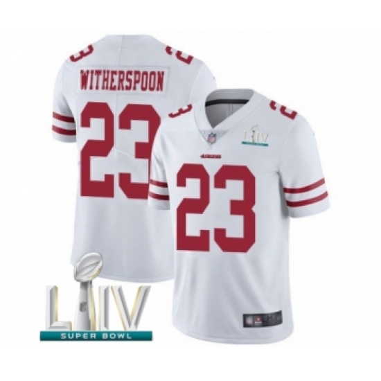 >Youth San Francisco 49ers #23 Ahkello Witherspoon White Vapor Untouchable Limited Player Super Bowl LIV Bound Football Jersey