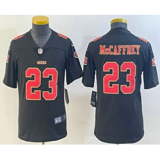 >Youth San Francisco 49ers #23 Christian McCaffrey Black Red Fashion Vapor Limited Stitched Jersey