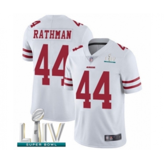 >Youth San Francisco 49ers #44 Tom Rathman White Vapor Untouchable Limited Player Super Bowl LIV Bound Football Jersey