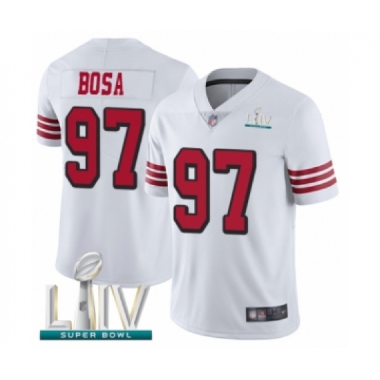 >Youth San Francisco 49ers #97 Nick Bosa Limited White Rush Vapor Untouchable Super Bowl LIV Bound Football Jersey
