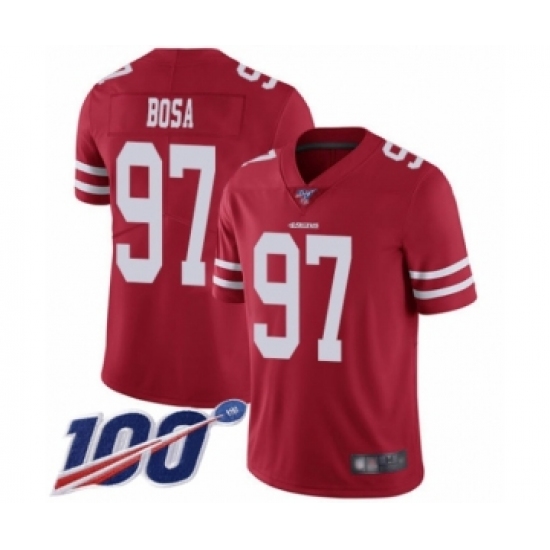 Youth San Francisco 49ers #97 Nick Bosa Red Team Color Vapor Untouchable Limited Player 100th Season Football Jersey
