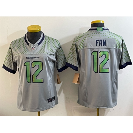 >Youth Seattle Seahawks #12 Fan Grey 2025 F.U.S.E. “Rivalries” Vapor Untouchable Limited Stitched Football Jersey