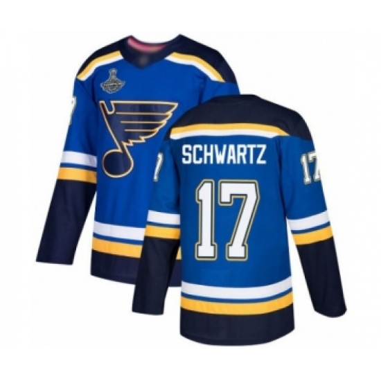 >Youth St. Louis Blues #17 Jaden Schwartz Authentic Royal Blue Home 2019 Stanley Cup Champions Hockey Jersey