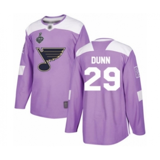 >Youth St. Louis Blues #29 Vince Dunn Authentic Purple Fights Cancer Practice 2019 Stanley Cup Final Bound Hockey Jersey
