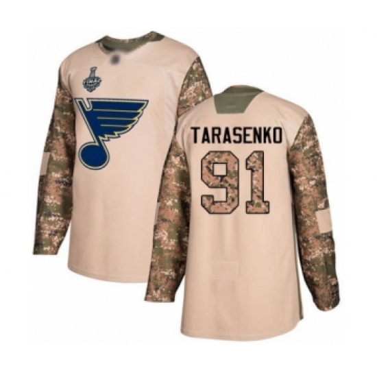 Youth St. Louis Blues #91 Vladimir Tarasenko Authentic Camo Veterans Day Practice 2019 Stanley Cup Final Bound Hockey Jersey