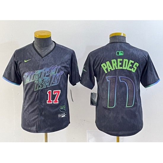 >Youth Tampa Bay Rays #17 Isaac Paredes Charcoal 2024 City Connect Limited Cool Base Jerseys