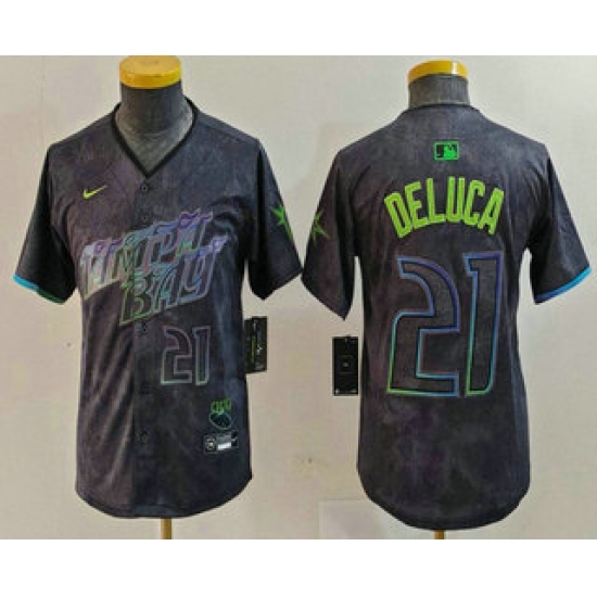 >Youth Tampa Bay Rays #21 Jonny DeLuca Number Charcoal 2024 City Connect Limited Stitched Jersey