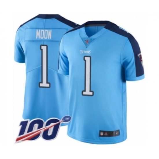 >Youth Tennessee Titans #1 Warren Moon Limited Light Blue Rush Vapor Untouchable 100th Season Football Jersey