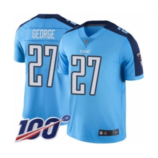 >Youth Tennessee Titans #27 Eddie George Limited Light Blue Rush Vapor Untouchable 100th Season Football Jersey