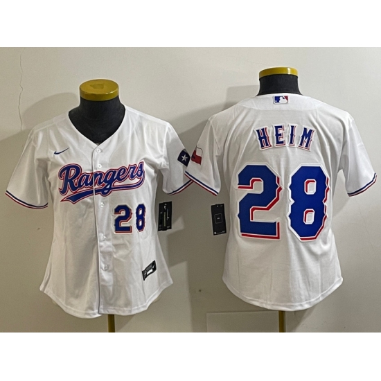 Women's Texas Rangers #28 Jonah Heim Nike White Home 2023 World Series Champions Replica Player Jersey