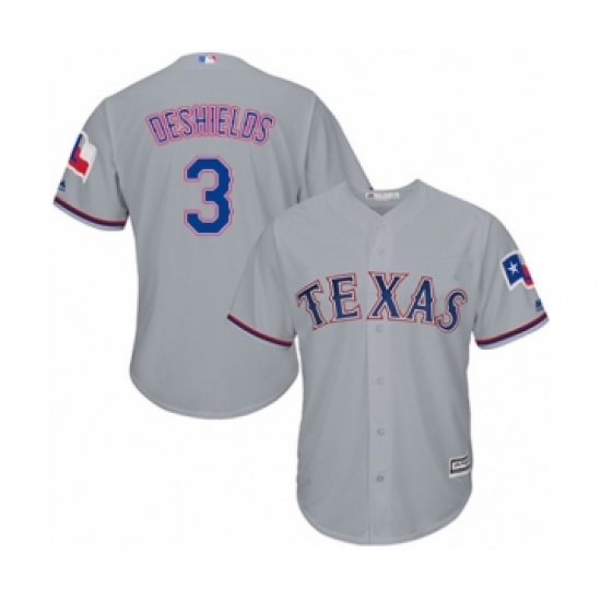 >Youth Texas Rangers #3 Delino DeShields Jr. Authentic Grey Road Cool Base Baseball Player Jersey