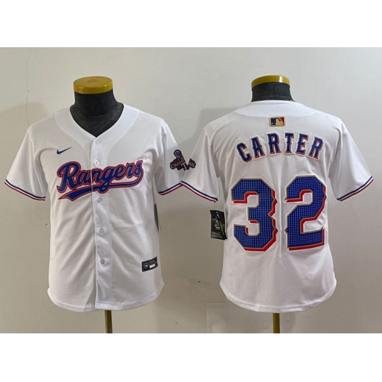 Youth Texas Rangers #32 Evan Carter White 2024 Gold Collection Limited Cool Base Jersey