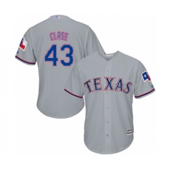 >Youth Texas Rangers #43 Emmanuel Clase Authentic Grey Road Cool Base Baseball Player Jersey