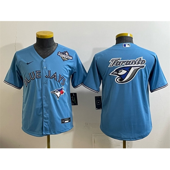 Youth Toronto Blue Jays Team Big Logo Blue 2025 World Series Cool Base Stitched Baseball Jersey