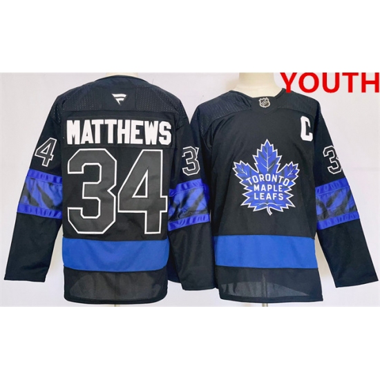 Youth Toronto Maple Leafs #34 Auston Matthews Black 2024-25 Stitched Jersey