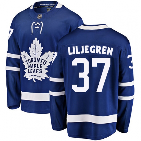 >Youth Toronto Maple Leafs #37 Timothy Liljegren Authentic Royal Blue Home Fanatics Branded Breakaway NHL Jersey