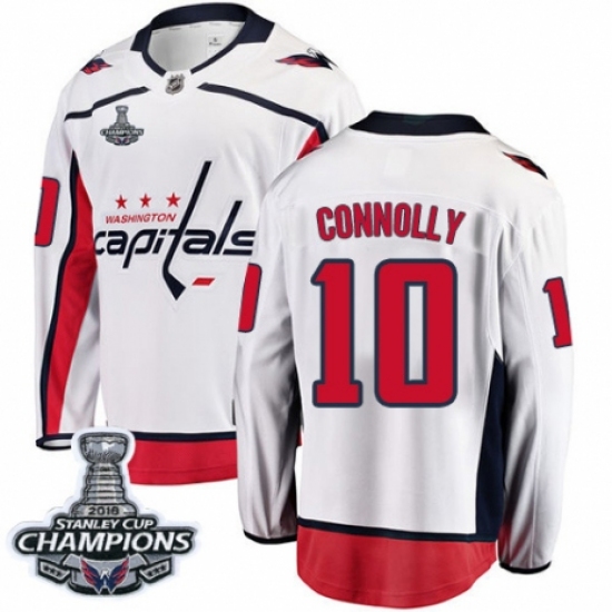>Youth Washington Capitals #10 Brett Connolly Fanatics Branded White Away Breakaway 2018 Stanley Cup Final Champions NHL Jersey