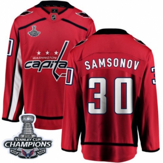 Youth Washington Capitals #30 Ilya Samsonov Fanatics Branded Red Home Breakaway 2018 Stanley Cup Final Champions NHL Jersey