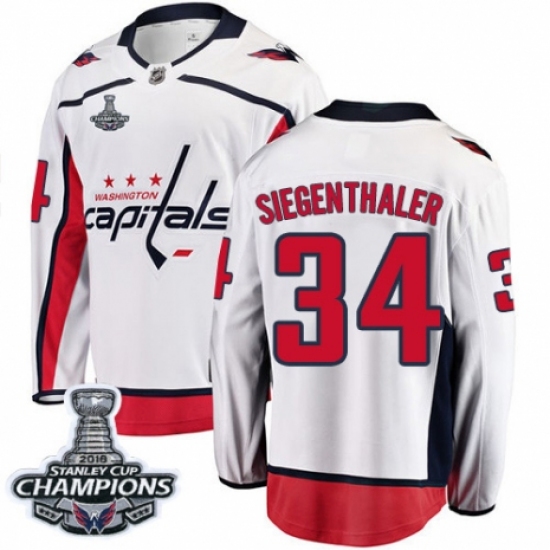>Youth Washington Capitals #34 Jonas Siegenthaler Fanatics Branded White Away Breakaway 2018 Stanley Cup Final Champions NHL Jersey