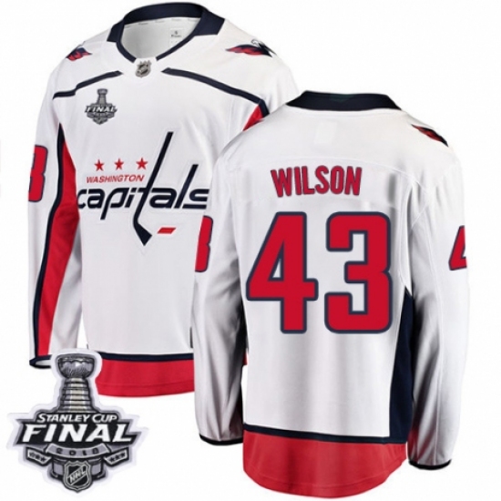 Youth Washington Capitals #43 Tom Wilson Fanatics Branded White Away Breakaway 2018 Stanley Cup Final NHL Jersey