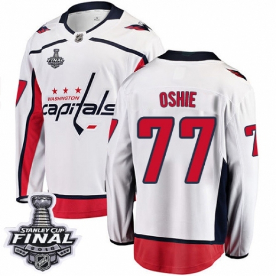 >Youth Washington Capitals #77 T.J. Oshie Fanatics Branded White Away Breakaway 2018 Stanley Cup Final NHL Jersey