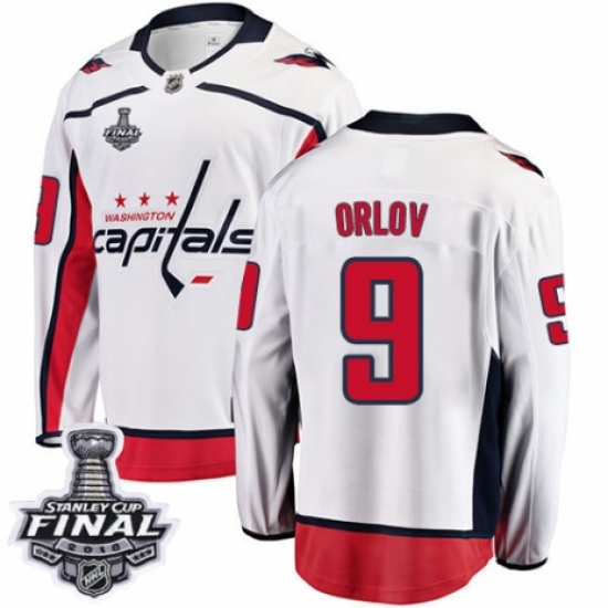 Youth Washington Capitals #9 Dmitry Orlov Fanatics Branded White Away Breakaway 2018 Stanley Cup Final NHL Jersey