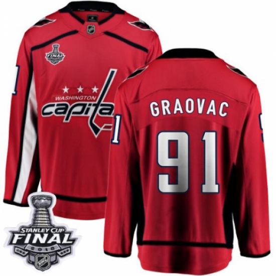 Youth Washington Capitals #91 Tyler Graovac Fanatics Branded Red Home Breakaway 2018 Stanley Cup Final NHL Jersey