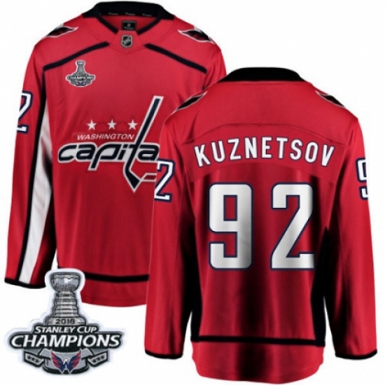 Youth Washington Capitals #92 Evgeny Kuznetsov Fanatics Branded Red Home Breakaway 2018 Stanley Cup Final Champions NHL Jersey