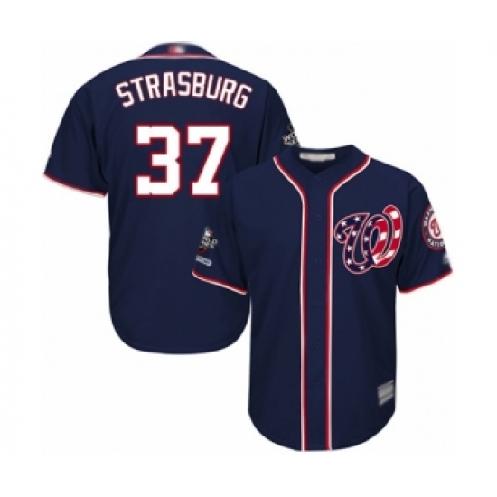>Youth Washington Nationals #37 Stephen Strasburg Authentic Navy Blue Alternate 2 Cool Base 2019 World Series Champions Baseball Jersey