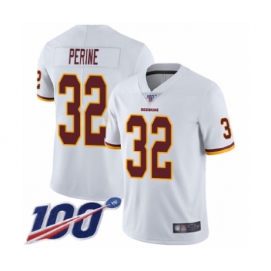 >Youth Washington Redskins #32 Samaje Perine White Vapor Untouchable Limited Player 100th Season Football Jersey