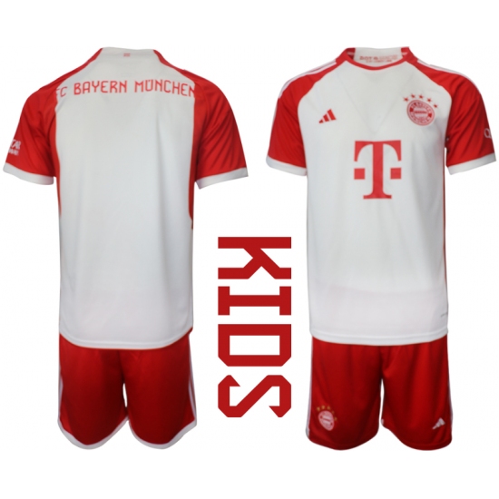 >kids Bayern Munich Blank 2023-24 White Home Soccer Jersey