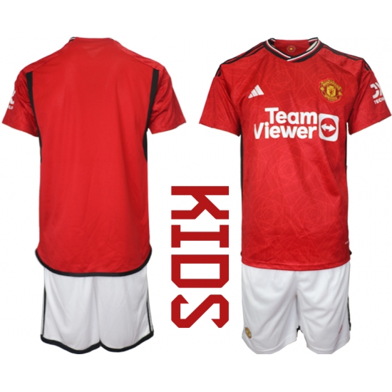 kids Manchester United Blank 2023-24 Red Home Soccer Jersey